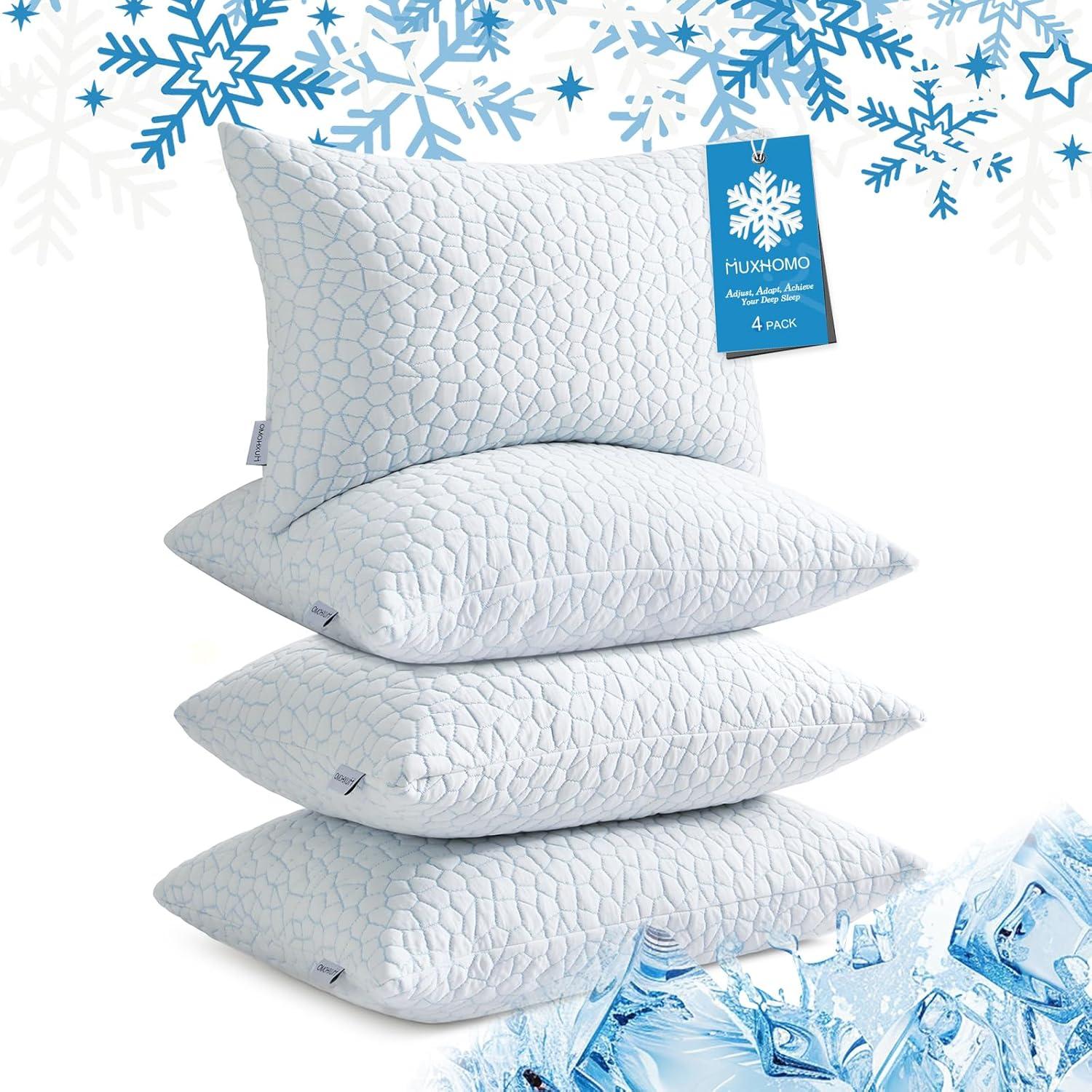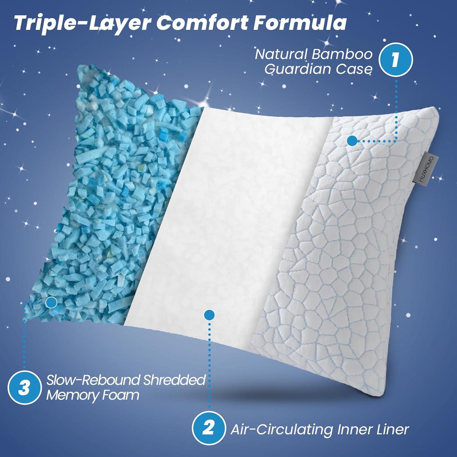 Stay Cool All Night: Made with 40% rayon derived from bamboo, the breathable cooling pillow cover enhances airflow to keep you cool night after night. MUXHOMO luxury shredded memory foam pillows for sleeping ensure a comfortable sleep experience
